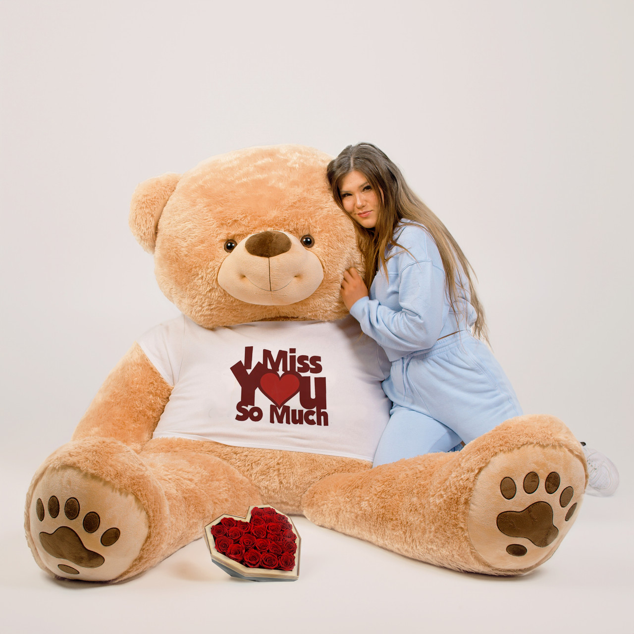 5,6,7 & 10 Foot Original Giant Teddy Brand Tan Teddy Bear with Optional customized T-shirt and Long Lasting Natural Preserved Roses