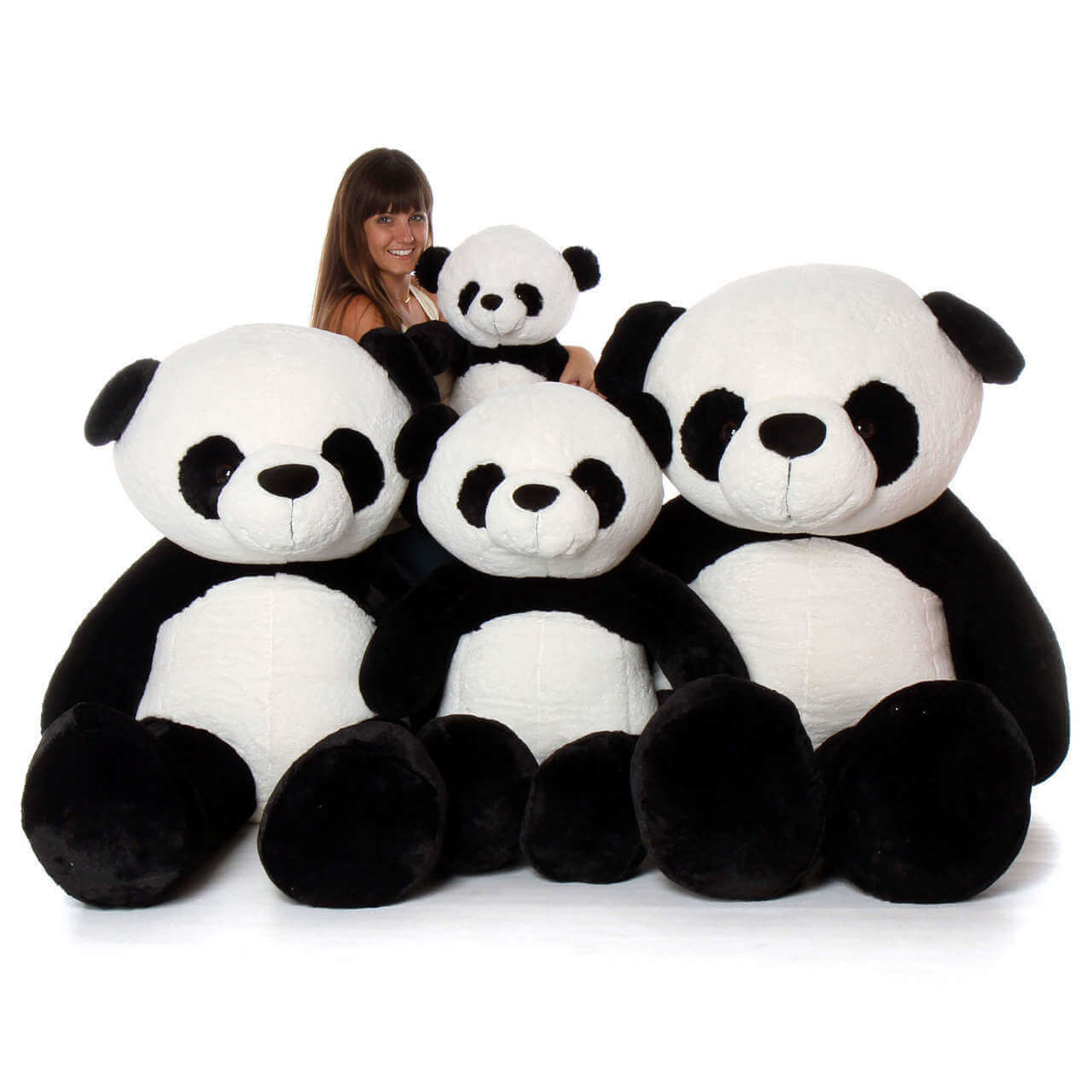 Rocky Xiong is our 72in (6 ft) Panda, but he has a sister named Precious Xiong who is 55in (4 ½ ft) and he also has some adorable Panda relatives in our Giant Teddy Xin Panda Family with a different body style and shape.